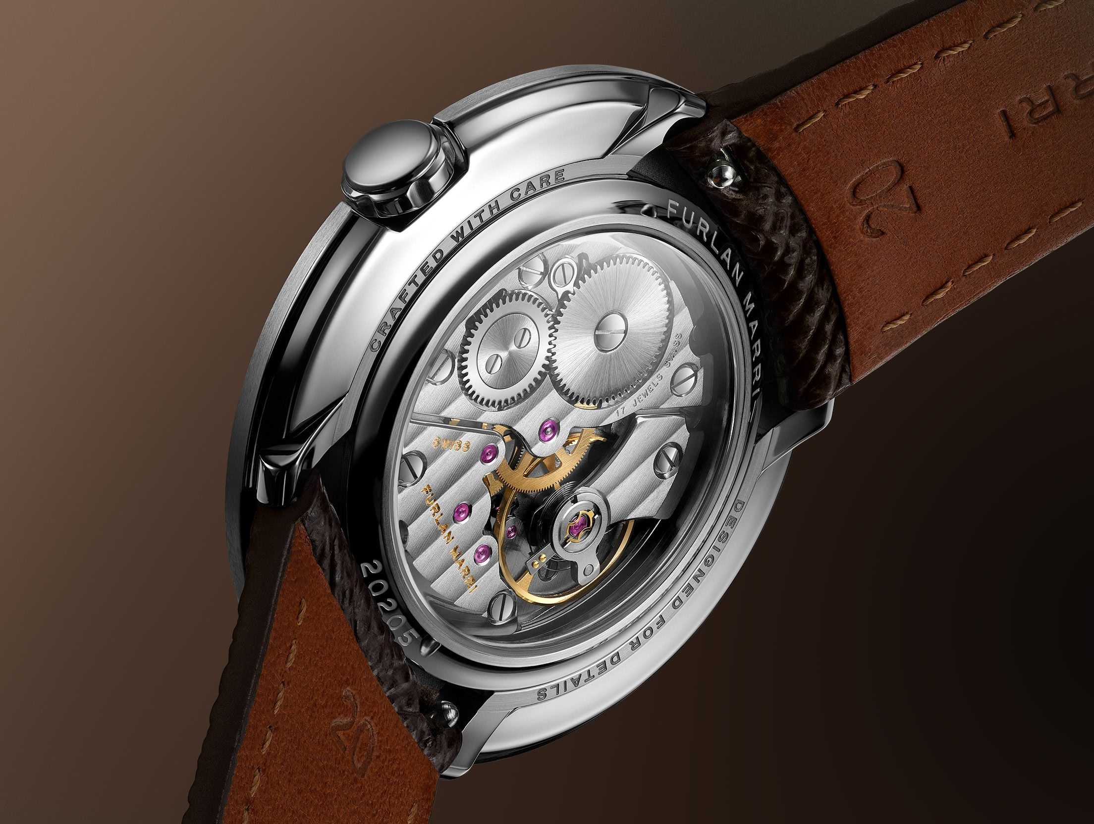 Meanwhile, Furlan Marri has meticulously redesigned the bridges, incorporating hand-finished and diamond-polished edges. The crown wheel and screws are black-polished and chamfered around the stones. All the beveling is done by hand in Geneva (Meyrin, Switzerland).